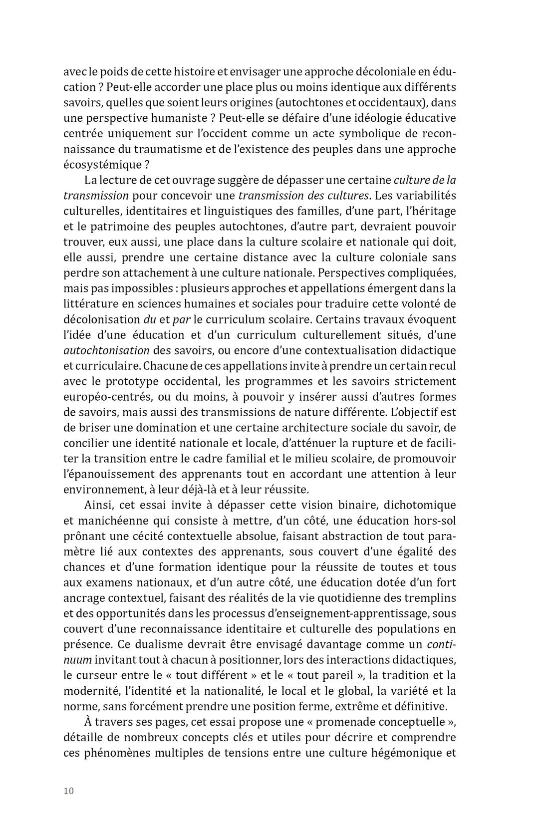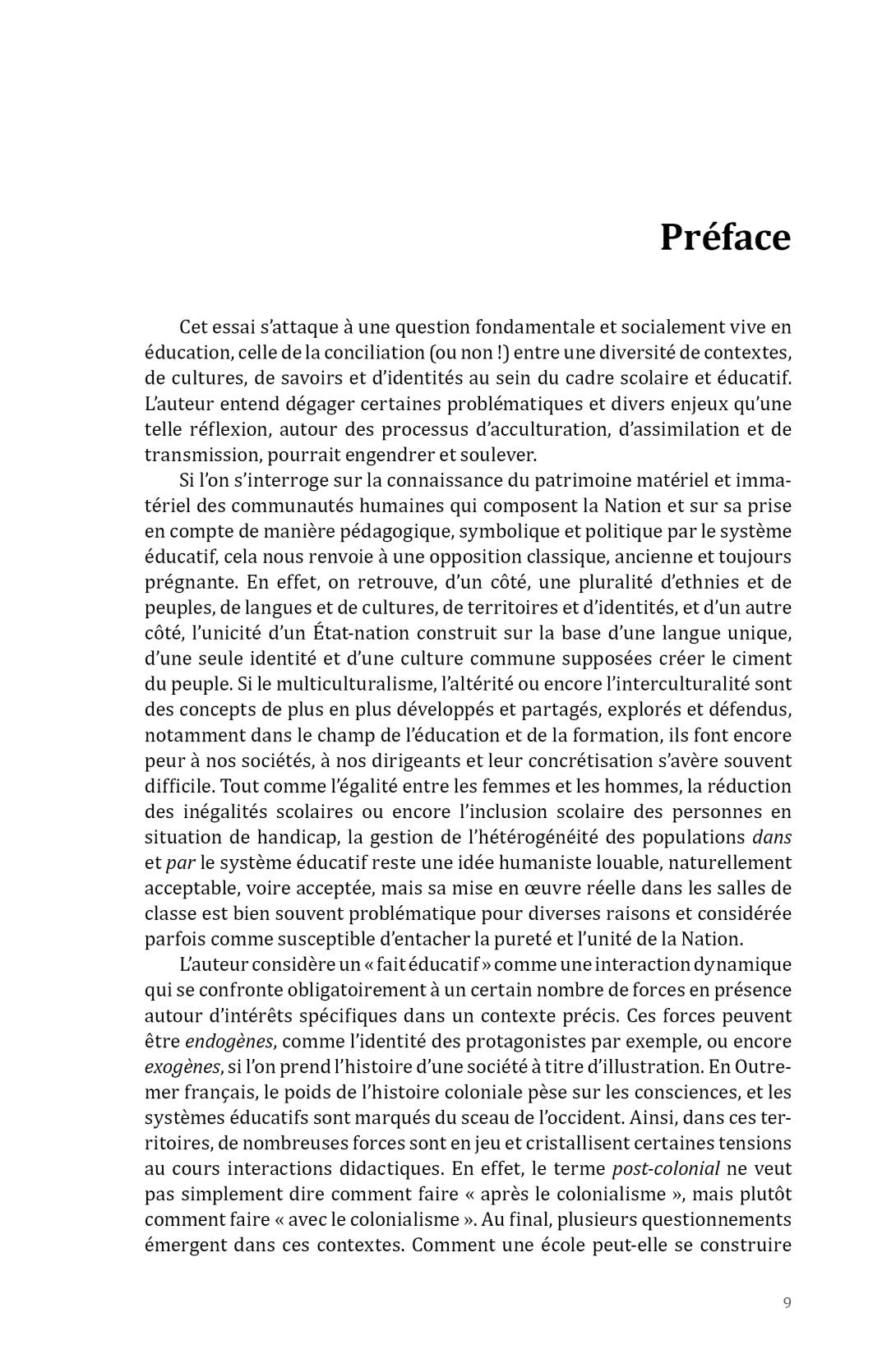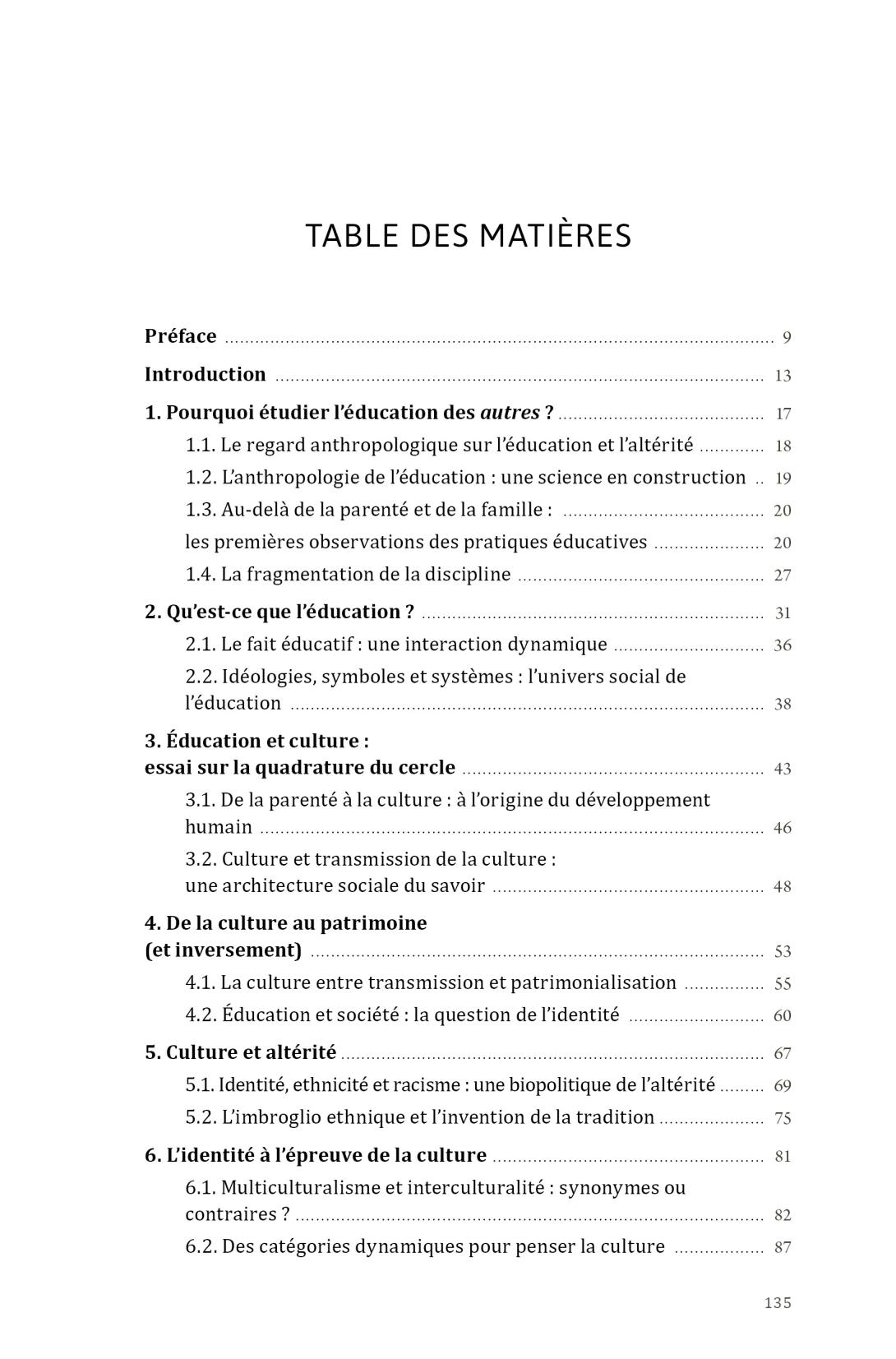 L’éducation, dans sa configuration la plus simple, est un processus de transmission de savoirs : une dynamique qui concerne à la fois notre nature d’Homo sapiens, notre appartenance à une communauté sociale et notre identité culturelle. Comment s’imbriquent ces différents niveaux et comment interagissent-ils ? Cet essai veut répondre à ces questions vives en proposant un cadre conceptuel pour repenser certaines notions (la culture, les savoirs scolaires, l’identité, l’ethnicité, l’autochtonie et le multiculturalisme) tout en procédant à l’examen critique des théories et courants de pensée par le biais desquels l’éducation est appréhendée en tant que fait social. L’approche transdisciplinaire choisie permet un dialogue polyphonique entre les disciplines socio-anthropologiques, les sciences de l’éducation et les sciences politiques, avec l’ambition de relativiser et de déconstruire les nombreux stéréotypes et préjugés liés à l’éducation des autres et à la supériorité ou infériorité supposée de certains systèmes éducatifs.