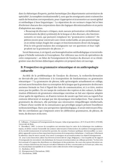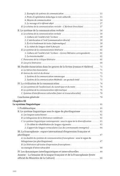 Pour la réalisation de l’objectif communicationnel, cet ouvrage préconise une grammaire de discours incluant différents paramètres. L’offre culturelle porte notamment sur l’inclusion d’autres littératures, en particulier francophones, s’inspirant du FLE et du comparatisme littéraire.