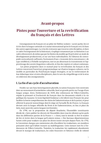 Cet ouvrage est d’actualité voire précurseur, dans sa prise en compte de « la société de la connaissance » et de l’interculturel qui résulte de la mondialisation. La crise de croissance que traverse l’enseignement du français et des Lettres donne lieu à des réponses, tant sur le terrain communicationnel et culturel que des valeurs éthiques et citoyennes.