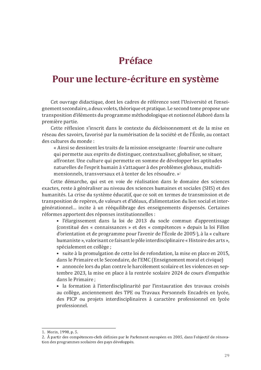 Le renforcement didactique préconisé résulte du rééquilibrage et de la mise en cohérence des savoirs sur les plans méthodologique et terminologique. Cela dans la perspective de faire accéder les publics à une réflexion plus graduée, complexe et en système, dans les activités de lecture et d’écriture. L’Essai de méthodologie de lecture-écriture comprend deux tomes, théorique et pratique.