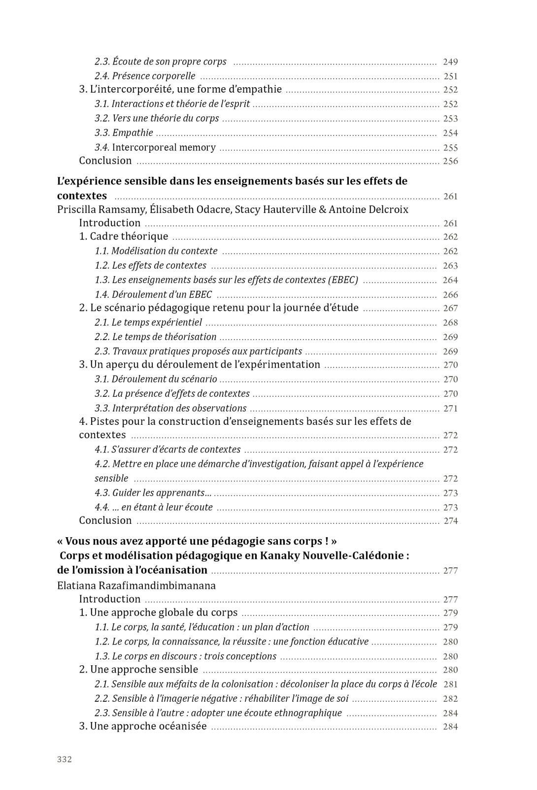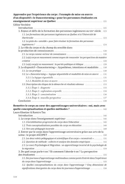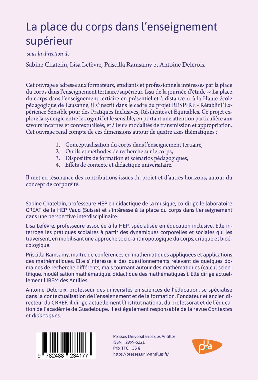 Cet ouvrage s'adresse aux formateurs, étudiants et professionnels intéressés par la place du corps dans l'enseignement tertiaire/supérieur. Issu de la journée d'étude "La place du corps dans l'enseignement tertiaire en présentiel et à distance" à la Haute école pédagogique de Lausanne, il s'inscrit dans le cadre du projet RESPIRE - Rétablir l'Expérience Sensible pour des Pratiques Inclusives, Résilientes et Équitables. Ce projet explore la synergie entre le cognitif et le sensible, en portant une attention particulière aux savoirs incarnés et contextualisés, et à leurs modalités de transmission et appropriation. Cet ouvrage rend compte de ces dimensions autour de quatre axes thématiques :