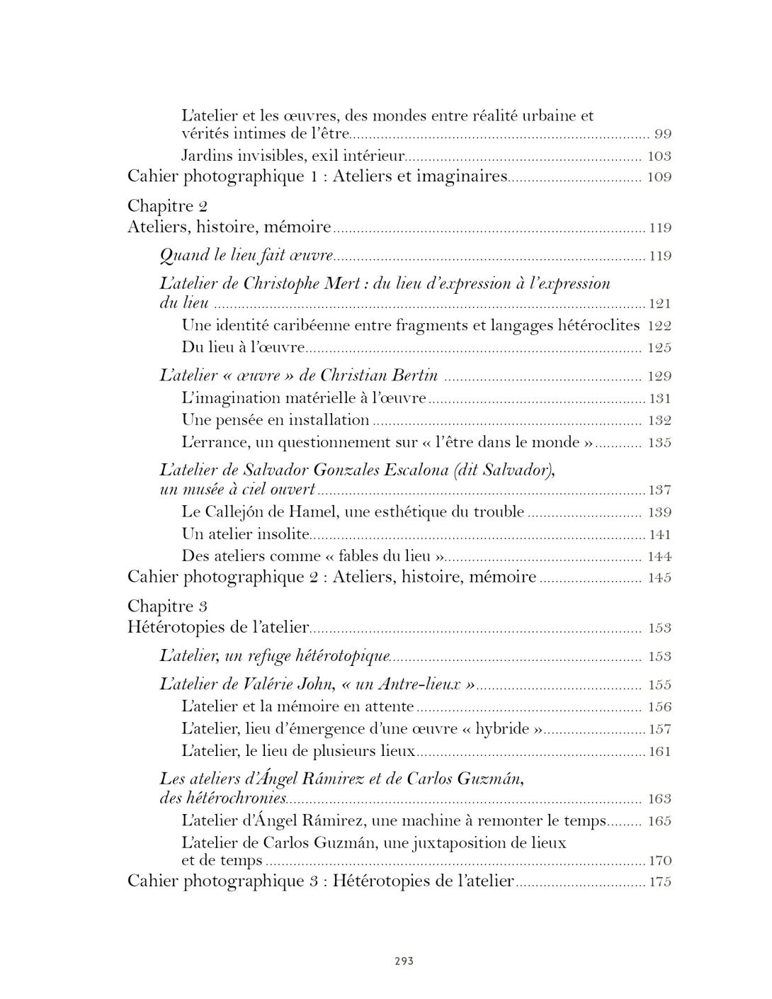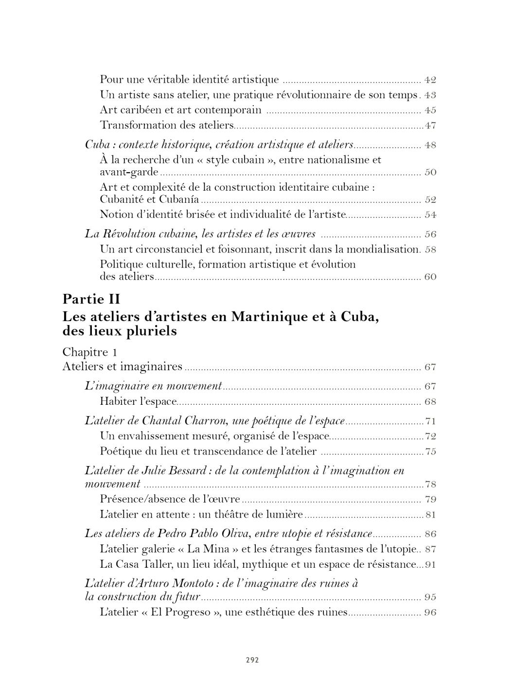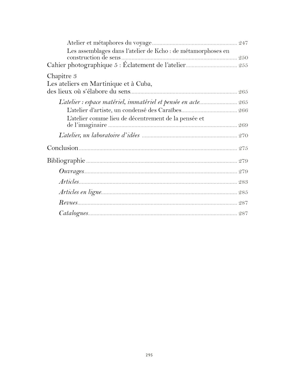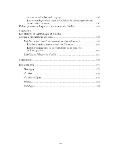 Chez les artistes caribéens, le lieu et l’œuvre, espaces en tension, s’inscrivent dans un réseau d’interrelations : la relation de l’artiste au lieu, la relation de son atelier avec le lieu, la relation singulière qui se noue de l’œuvre à son espace de création. Au sein de ces faisceaux de réseaux humains et spatiaux, les ateliers, territoires de la sensibilité, de la pensée, de l’action, de la réflexion, sont des entre-lieux, des intervalles qu’il est intéressant de questionner. L’atelier est le lieu d’exploration privilégié des œuvres, là où peut s’établir à la fois une relation privée, intime, de l’ordre du sensible, une émotion esthétique qui va précéder la réflexion, l’analyse. L’histoire des Antilles et les évènements qui ont forgé la Martinique et Cuba dans leur singularité ont conditionné l’évolution des pratiques artistiques et celle des ateliers. Le passé, l’histoire, ont-ils généré des formes particulières, atypiques d’ateliers ? Existe-t-il des pratiques d’ateliers transgressives ? Les ateliers des artistes caribéens représentent des espaces de création hétérogènes et complexes, multiformes, en évolution constante, toujours en devenir. Véritables laboratoires de poïétique, ils participent à la mise en lumière d’une pensée créatrice spécifique, intimement liée au lieu, au processus qui conduit à l’instauration de ces œuvres contextuelles, à la fois enracinées dans leur lieu et complètement engagées dans le cours du monde.