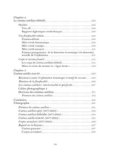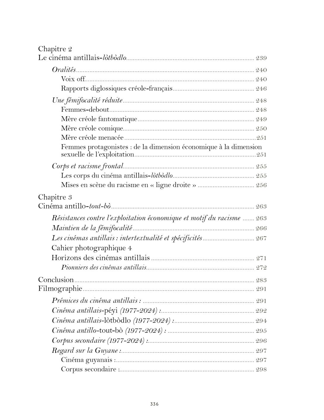 Qu’est-ce que le cinéma antillais – Guadeloupe, Martinique ? Cet ouvrage présente une analyse de l’intégralité des longs-métrages de fiction faits par des réalisateurs antillais, ou venant des Antilles dont ils gardent une mémoire, afin d’y interroger un possible « regard de l’intérieur » (insider’s view). Dans un premier temps, il se concentre sur les films dont les intrigues se déroulent majoritairement en Guadeloupe ou en Martinique, à savoir le cinéma antillais-péyi. Que recèlerait-il ? En particulier, ce livre se concentre sur la combinaison des personnages caractéristiques de ce cinéma qui le distingue à l’intérieur de la production française et vis-à-vis de cinématographies à l’international : le conteur créole, le Nègre marron, le gadèdzafè-kenbwazè (médium-sorcier) et le rôle central des femmes (fémifocalité). Il propose une analyse détaillée et accessible de la mise en scène de ces figures récurrentes qui dégage un discours décolonial, qui s’estompera au fur et à mesure des films, ainsi que les prémices d’une esthétique. Dans un second temps, il interroge les liens existant entre le cinéma antillais-péyi, d’un côté, et les films de réalisateurs antillais, ou d’origine antillaise, se déroulant en d’autres parties du Monde : à savoir, le cinéma antillais-lòtbòdlo (France hexagonale) et le cinéma antillo-tout-bò (continent africain, États-Unis, etc.), comme échos du cinéma antillais-péyi.