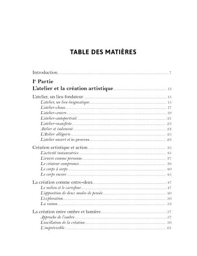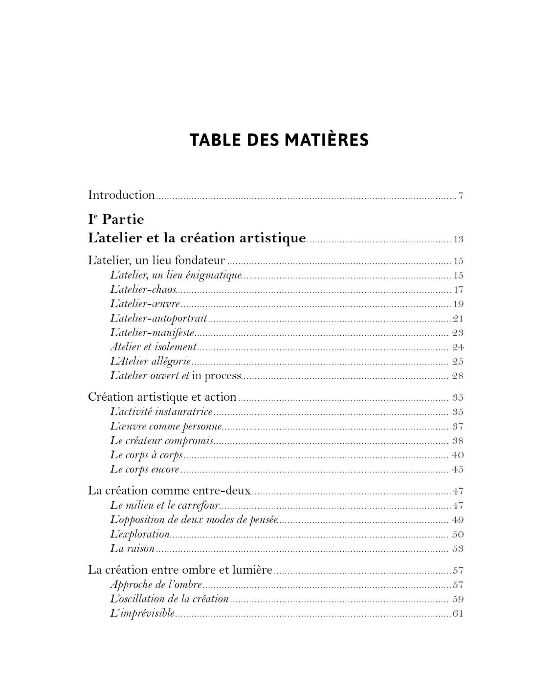 La création artistique est envisagée ici au travers de trois aspects : l’élaboration de l’œuvre, son aboutissement et sa réception par le public. Traditionnellement, l’œuvre plastique prend naissance dans l’atelier, lieu fondateur, d’autres fois dans la nature ou dans l’espace urbain. Le processus créateur est un phénomène complexe, voire mystérieux. Le résultat obtenu est généralement autre que le projet qui l’a suscité. Que se passe-t-il durant ce laps de temps au cours duquel l’œuvre se construit, s’organise ? Comment l’artiste procède-t-il ? Quels obstacles rencontre-t-il ? L’imprévu, la contingence, le hasard, l’accident ne manquent pas de surgir. Comment l’artiste réagit-il à ces manifestations ?