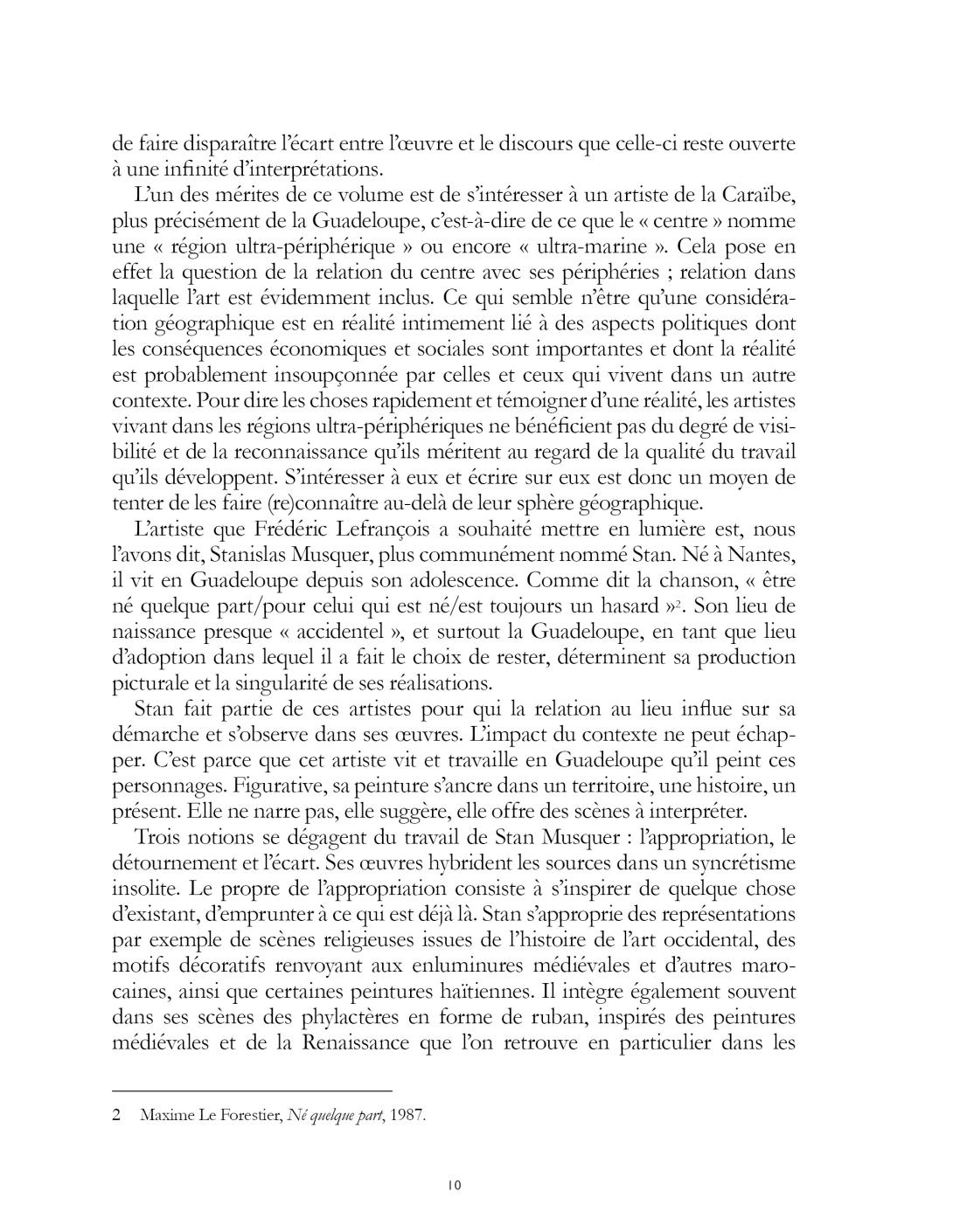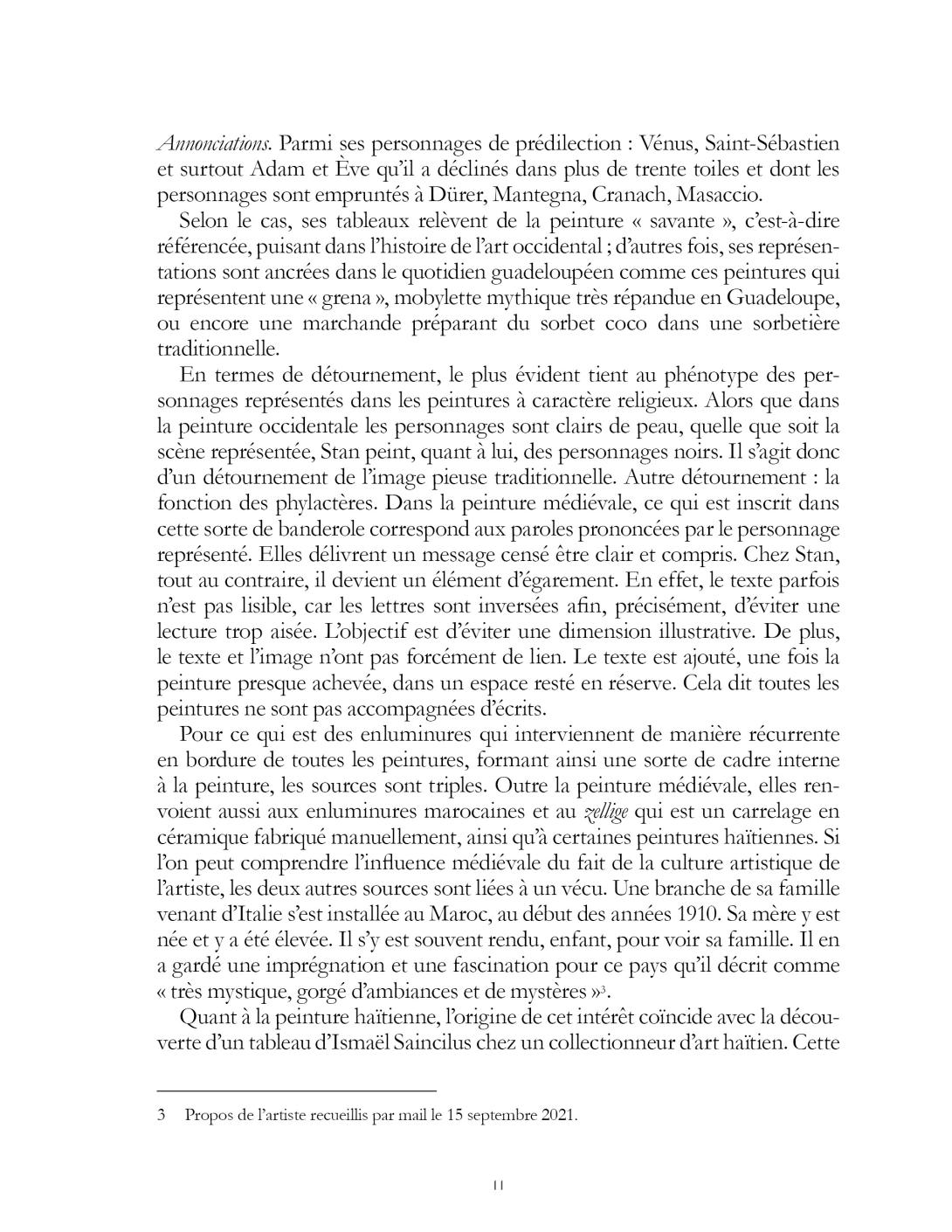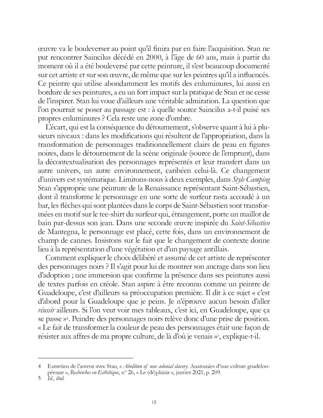 Cet ouvrage collectif est composé d’une douzaine d’études consacrées à Trinité, oeuvre-phare de Stan Musquer, peintre guadeloupéen d’origine nantaise. Cette peinture singulière, au métissage marqué, s’ancre résolument dans la transmodernité caribéenne. Tout en sondant l’âme des sociétés dont elle interroge le passé et les dynamiques actuelles, Trinité se rattache à l’évolution de l’art dans une perspective éminemment transhistorique. Croisant plusieurs angles et modes d’approche différents, une douzaine de chercheurs et critiques d’art se sont penchés sur cette oeuvre énigmatique, et emblématique, de la peinture de Stan, pour en révéler l’originalité et la complexité. À ce carrefour transdisciplinaire sont invitées l’histoire et la sociologie de l’art, la sémiotique et les études décoloniales, autant de perspectives qui féconderont la lecture de cet opus au dialogisme marqué.