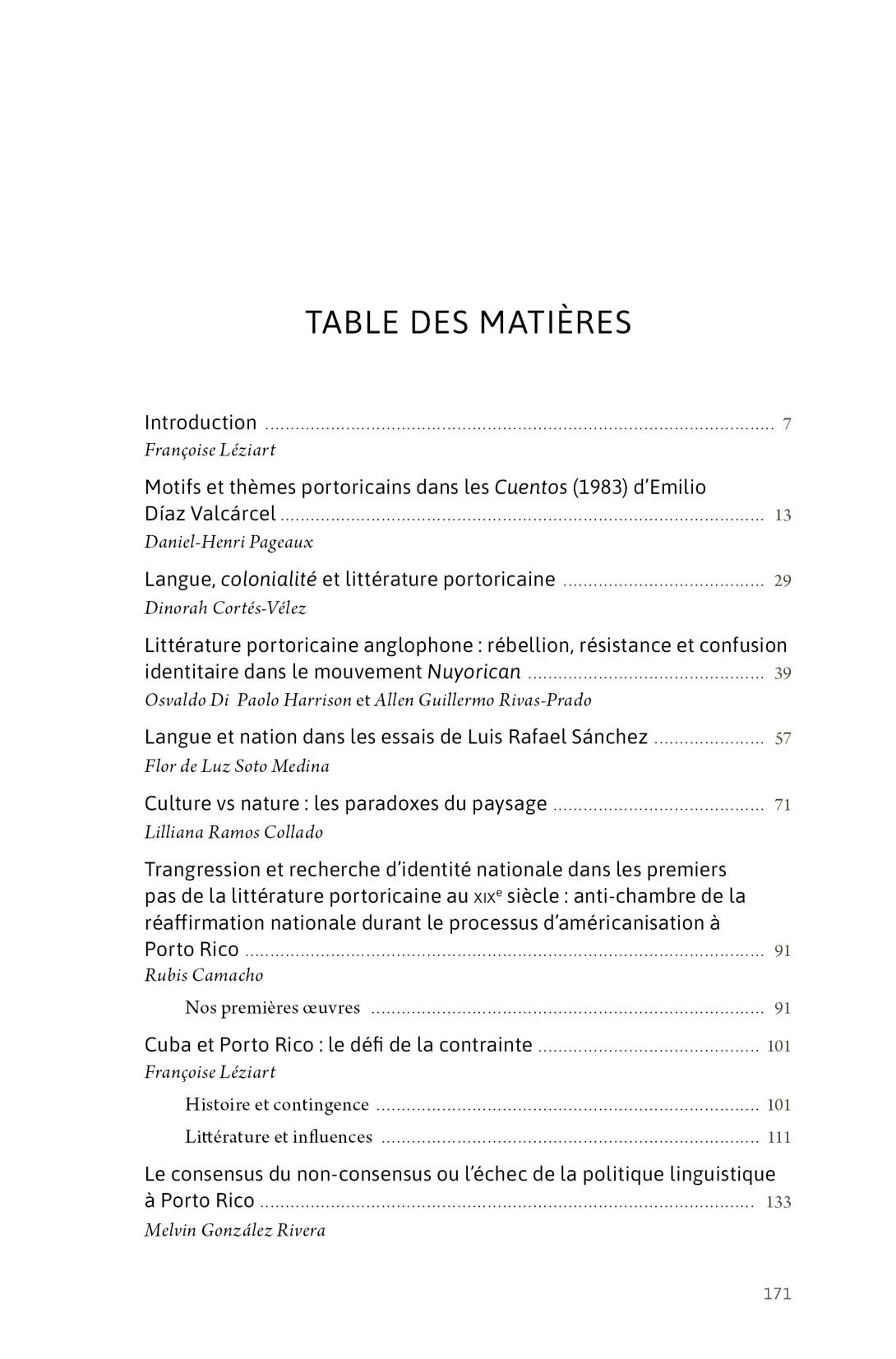 L’évolution particulière de cette nation a eu des conséquences sur son développement social et culturel. Privés de racines préhispaniques du fait de la disparition de la population indienne, les Portoricains -après l’invasion nord-américaine et l’imposition de la langue anglaise- ont renoué (presque par défaut) avec leur passé hispanique pour fédérer leur force. Et, c’est ce flottement que va être analysé dans ce livre (sous l’aspect linguistique et littéraire) par des universitaires de la métropole et des universitaires portoricains travaillant aux États-Unis ou qui vivent à Porto Rico.