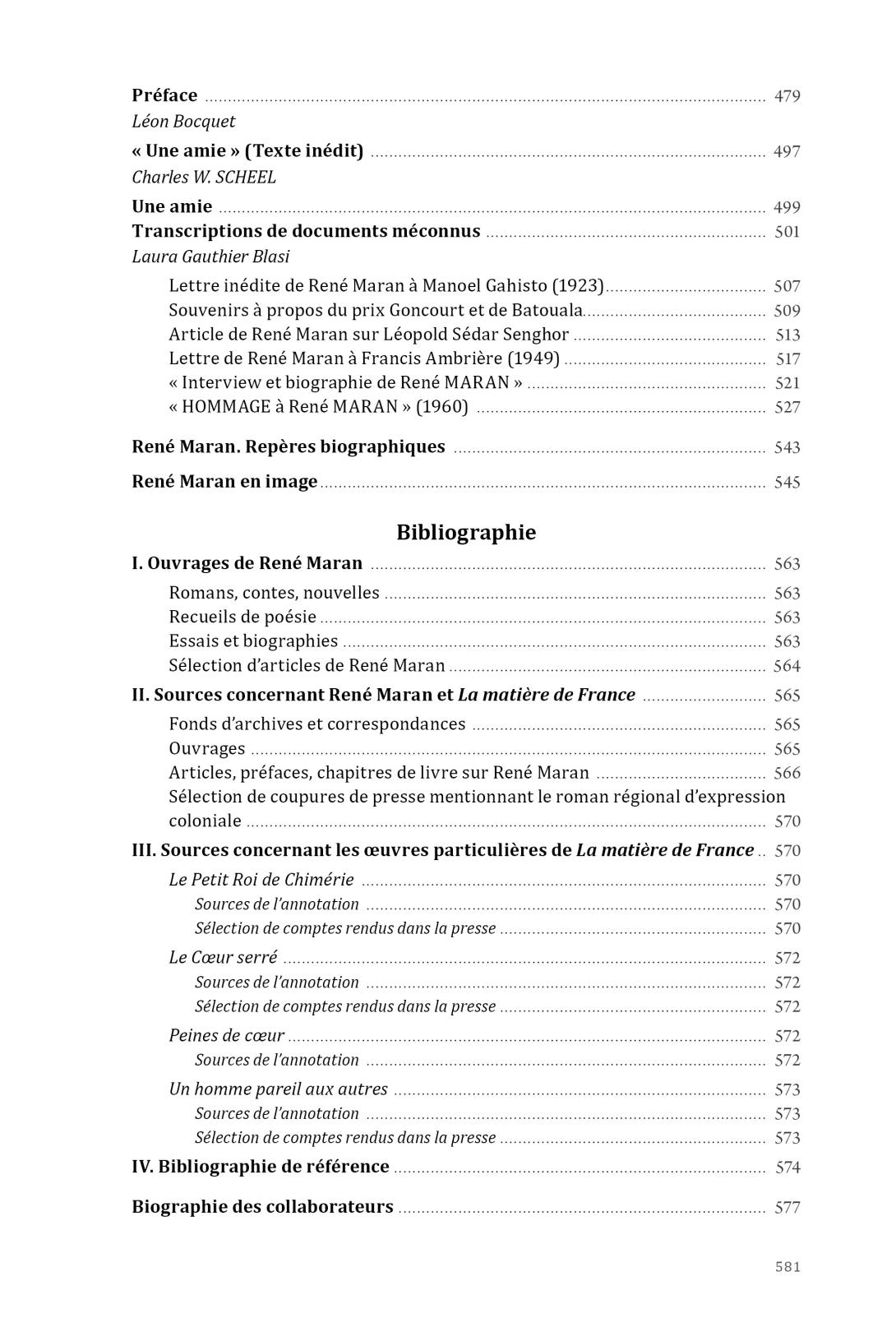 Les quatre ouvrages de fiction publiés par René Maran entre 1924 et 1947, concernant sa vie d’écrivain noir en France, sont réunis ici dans une édition critique à orientation génétique, basée sur les nombreux manuscrits conservés dans des archives à Paris, Bordeaux ou Dakar :
