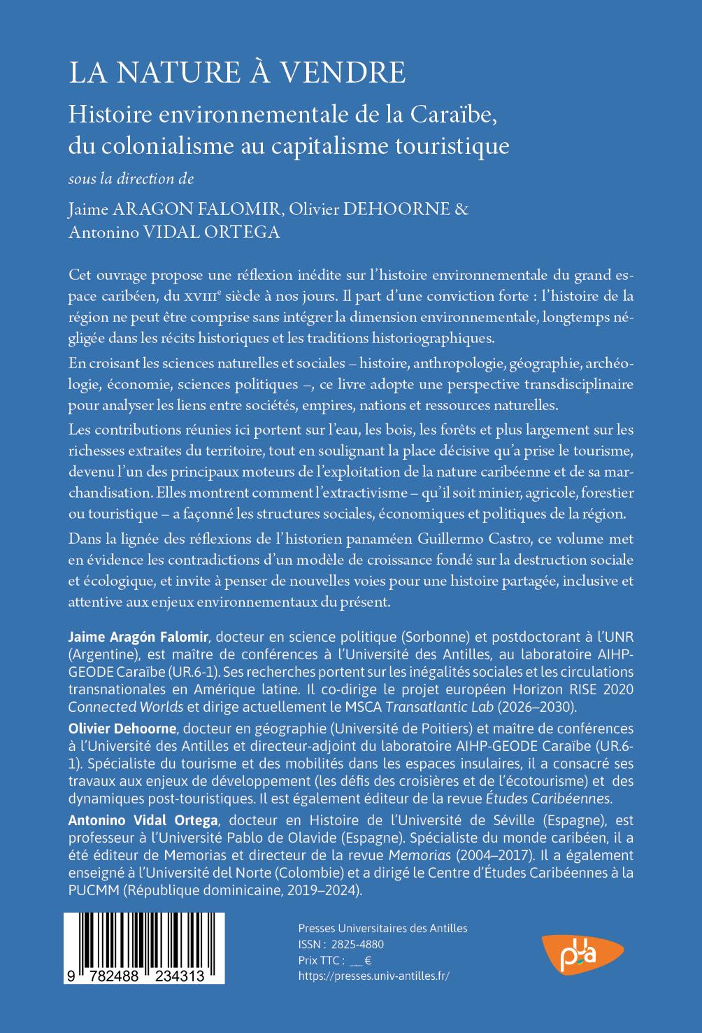 Cet ouvrage propose une réflexion inédite sur l’histoire environnementale du grand espace caribéen, du XVIIIᵉ siècle à nos jours. Il part d’une conviction forte : l’histoire de la région ne peut être comprise sans intégrer la dimension environnementale, longtemps négligée dans les récits historiques et les traditions historiographiques.