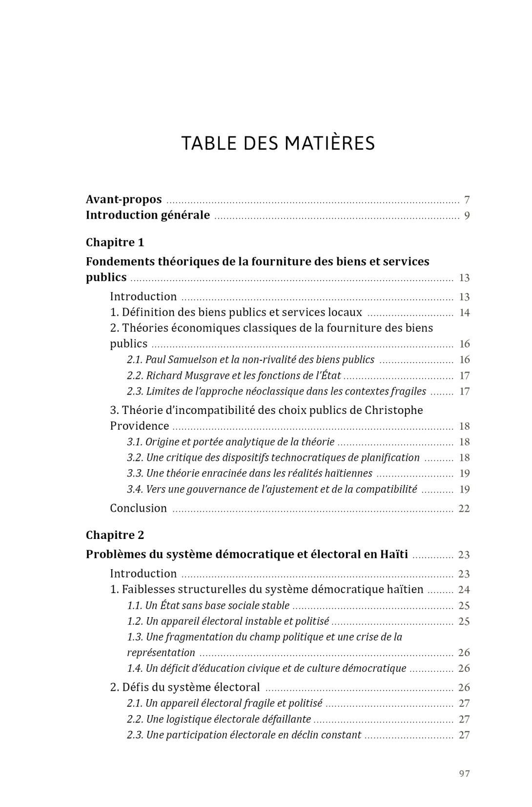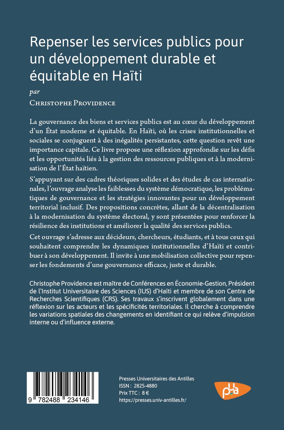 La gouvernance des biens et services publics est au cœur du développement d’un État moderne et équitable. En Haïti, où les crises institutionnelles et sociales se conjuguent à des inégalités persistantes, cette question revêt une importance capitale. Ce livre propose une réflexion approfondie sur les défis et les opportunités liés à la gestion des ressources publiques et à la modernisation de l’État haïtien.