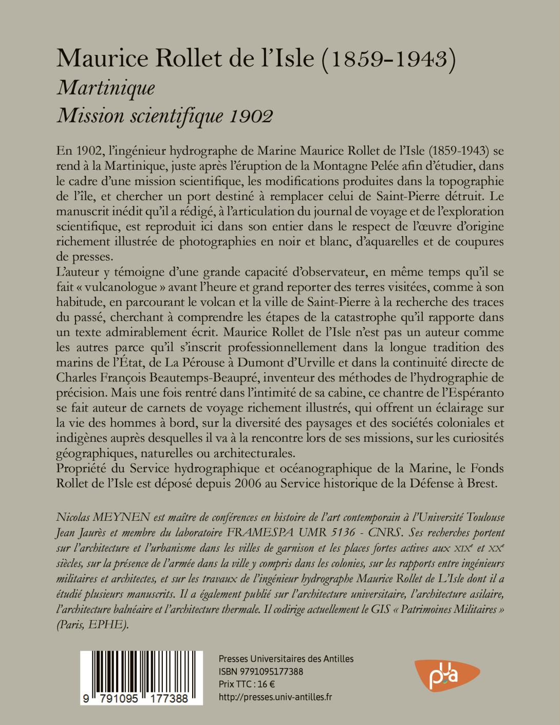 L’auteur y témoigne d’une grande capacité d’observateur, en même temps qu’il se fait « vulcanologue » avant l’heure et grand reporter des terres visitées, comme à son habitude, en parcourant le volcan et la ville de Saint-Pierre à la recherche des traces du passé, cherchant à comprendre les étapes de la catastrophe qu’il rapporte dans un texte admirablement écrit. Maurice Rollet de l’Isle n’est pas un auteur comme les autres parce qu’il s’inscrit professionnellement dans la longue tradition des marins de l’État, de La Pérouse à Dumont d’Urville et dans la continuité directe de Charles François Beautemps-Beaupré, inventeur des méthodes de l’hydrographie de précision. Mais une fois rentré dans l’intimité de sa cabine, ce chantre de l’Espéranto se fait auteur de carnets de voyage richement illustrés, qui offrent un éclairage sur la vie des hommes à bord, sur la diversité des paysages et des sociétés coloniales et indigènes auprès desquelles il va à la rencontre lors de ses missions, sur les curiosités géographiques, naturelles ou architecturales.